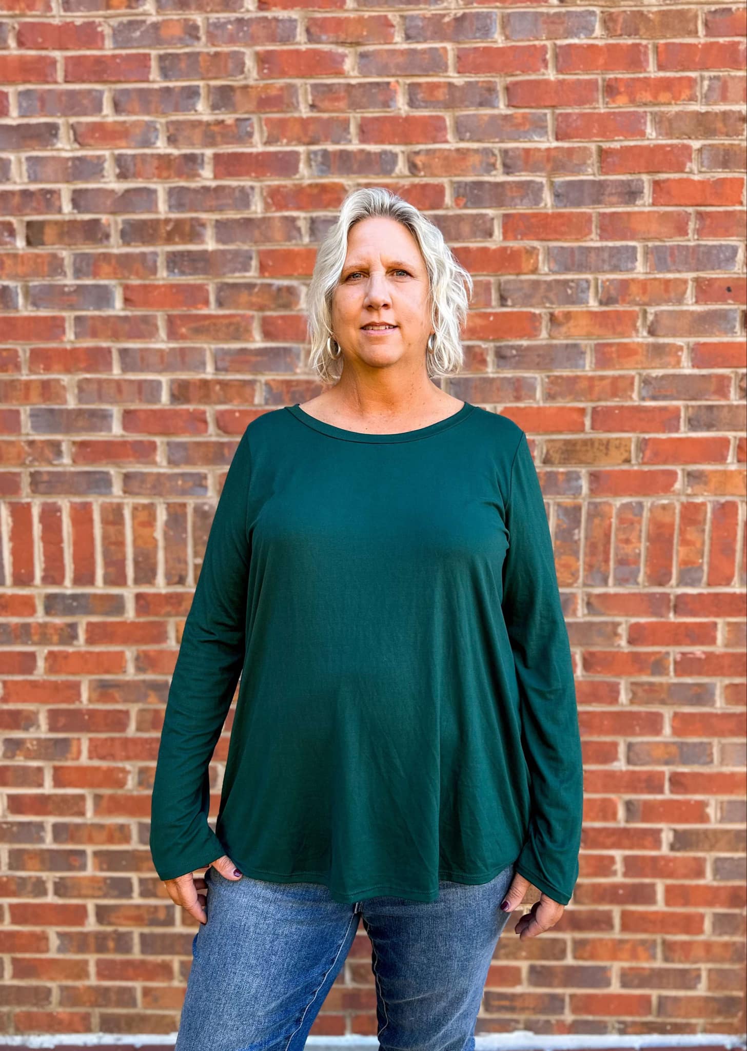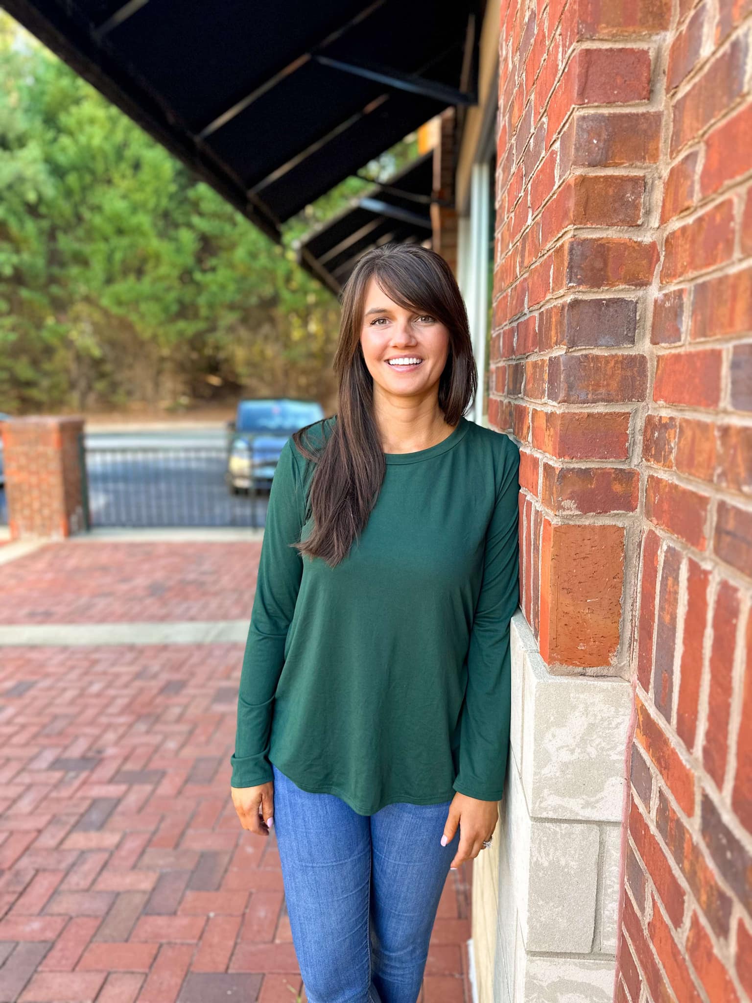 This is a great basic top that you will for sure want to add to your closet! It is so soft, and features a round neck, and long sleeves.
