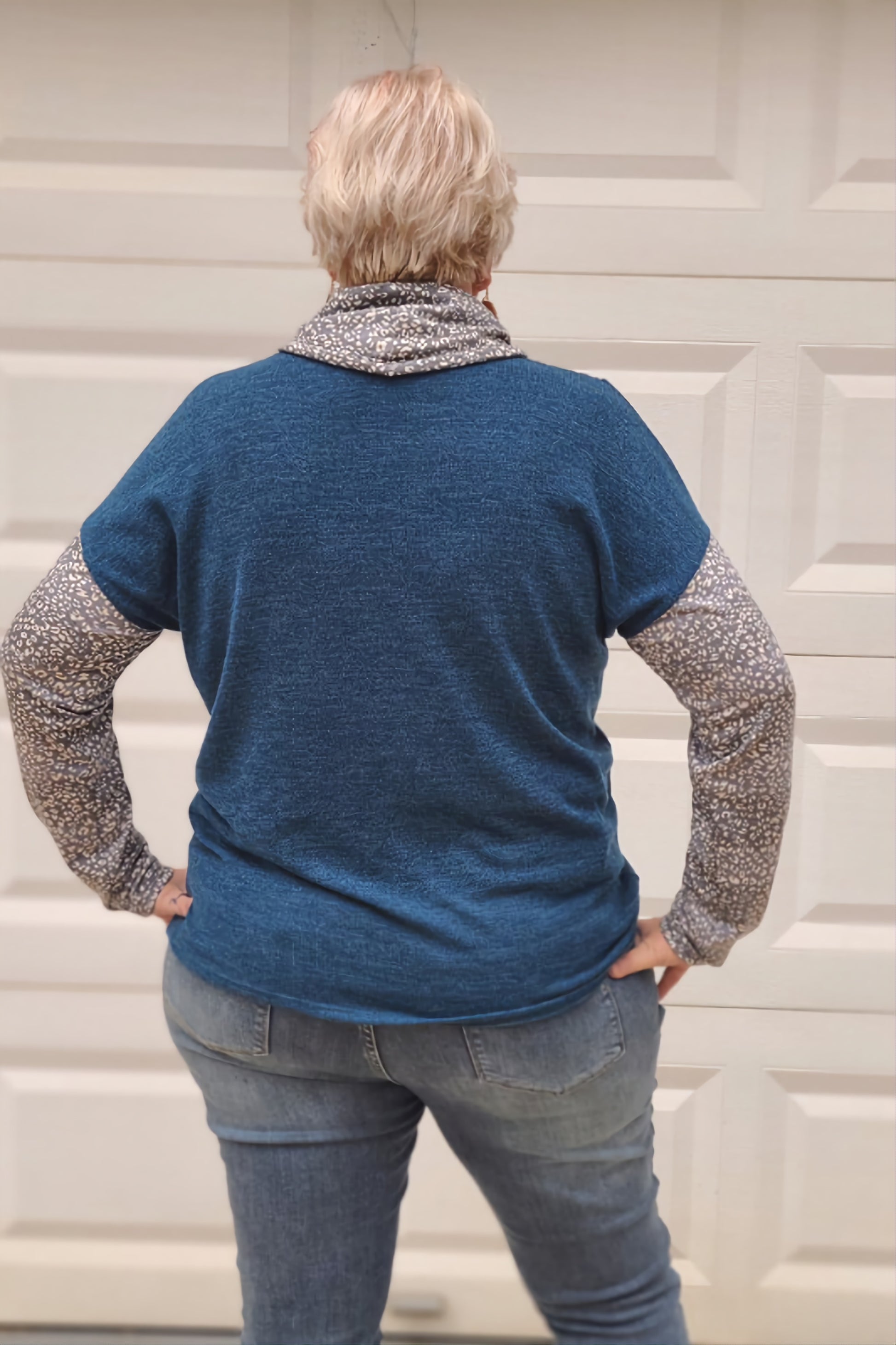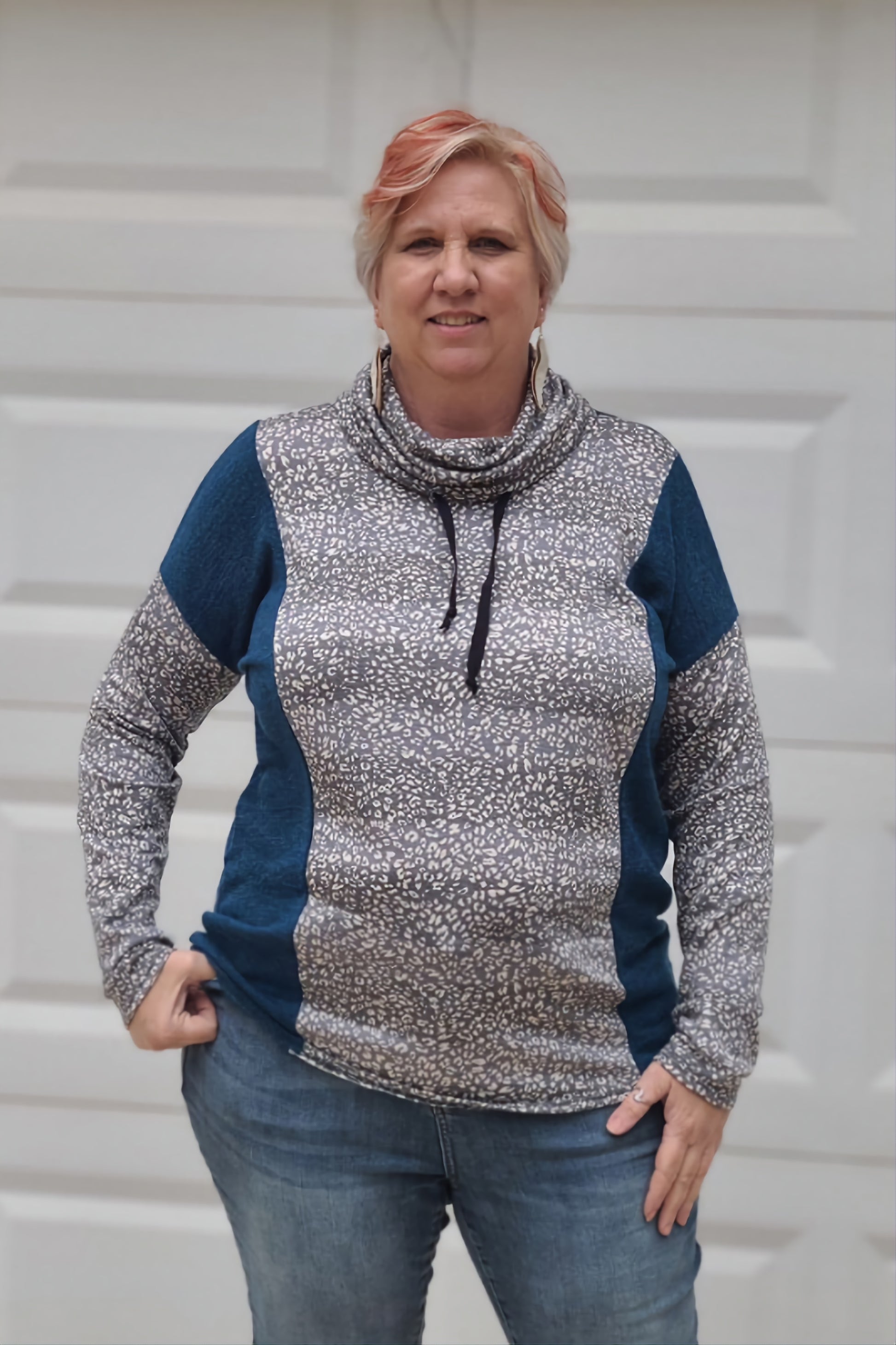 The fun animal print of this one would be enough for anyone to love! The details include a cowl neck with functional drawstrings, and it is lightweight, soft, and stretchy.