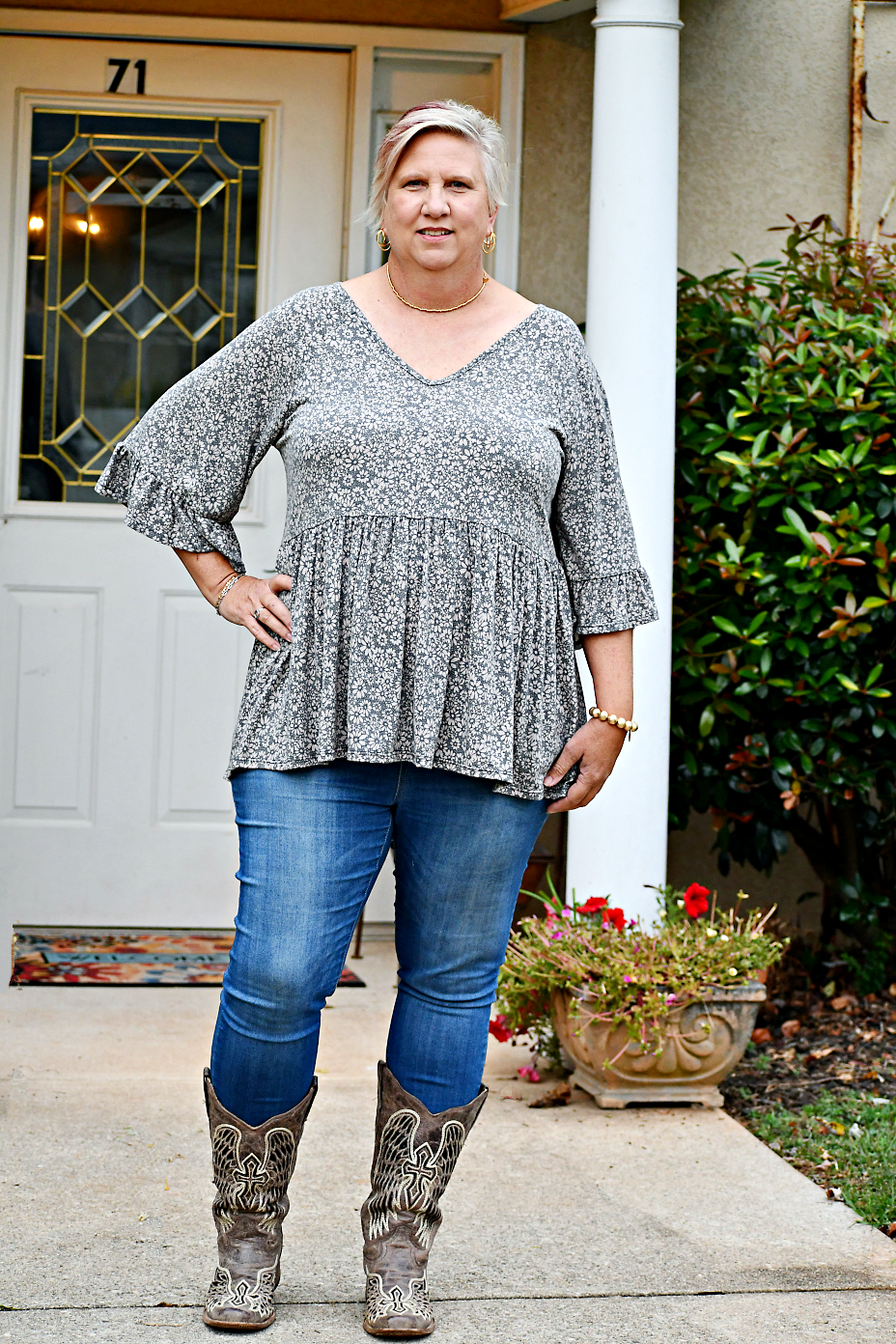 Our Floral Print Babydoll Knit Top in Black The details include raglan short sleeves with ruffle detail, v-neckline, babydoll style, and it is so soft and comfortable. A classic look with a modern twist that will have you feeling your best--from day to night!
