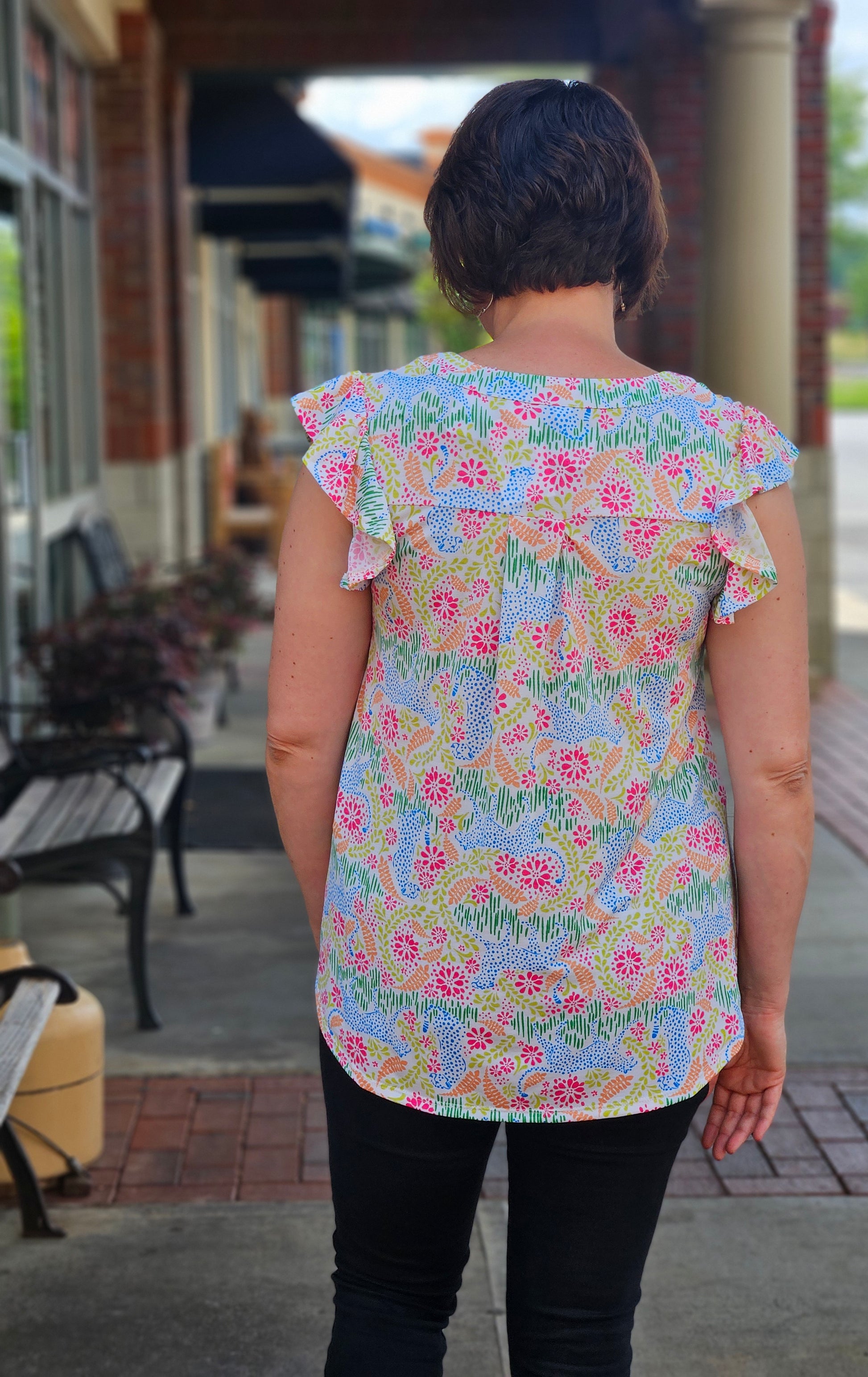 We love the cut flutter sleeves on this easy going top. Relaxed, knit, stretchy, and wrinkle free. Add a touch of boldness and playfulness to your wardrobe with our Flutter Sleeve Leopard Print Top. The china collar with back pleated detail adds a unique and sophisticated touch, while the cut flutter sleeves give this top a relaxed and effortless look. Made from a stretchy knit fabric, it's easy to move in and stays wrinkle-free all day long. Perfect for adding some fun and flair to your everyday style!