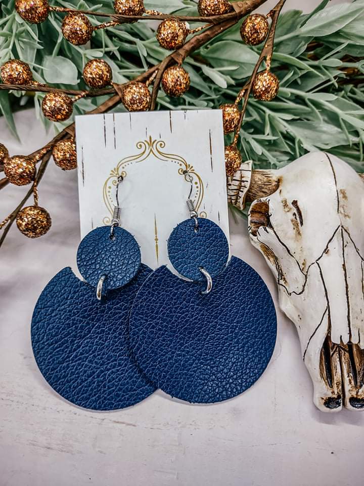 Genuine Leather Gina Style Earrings in Pebbled Navy