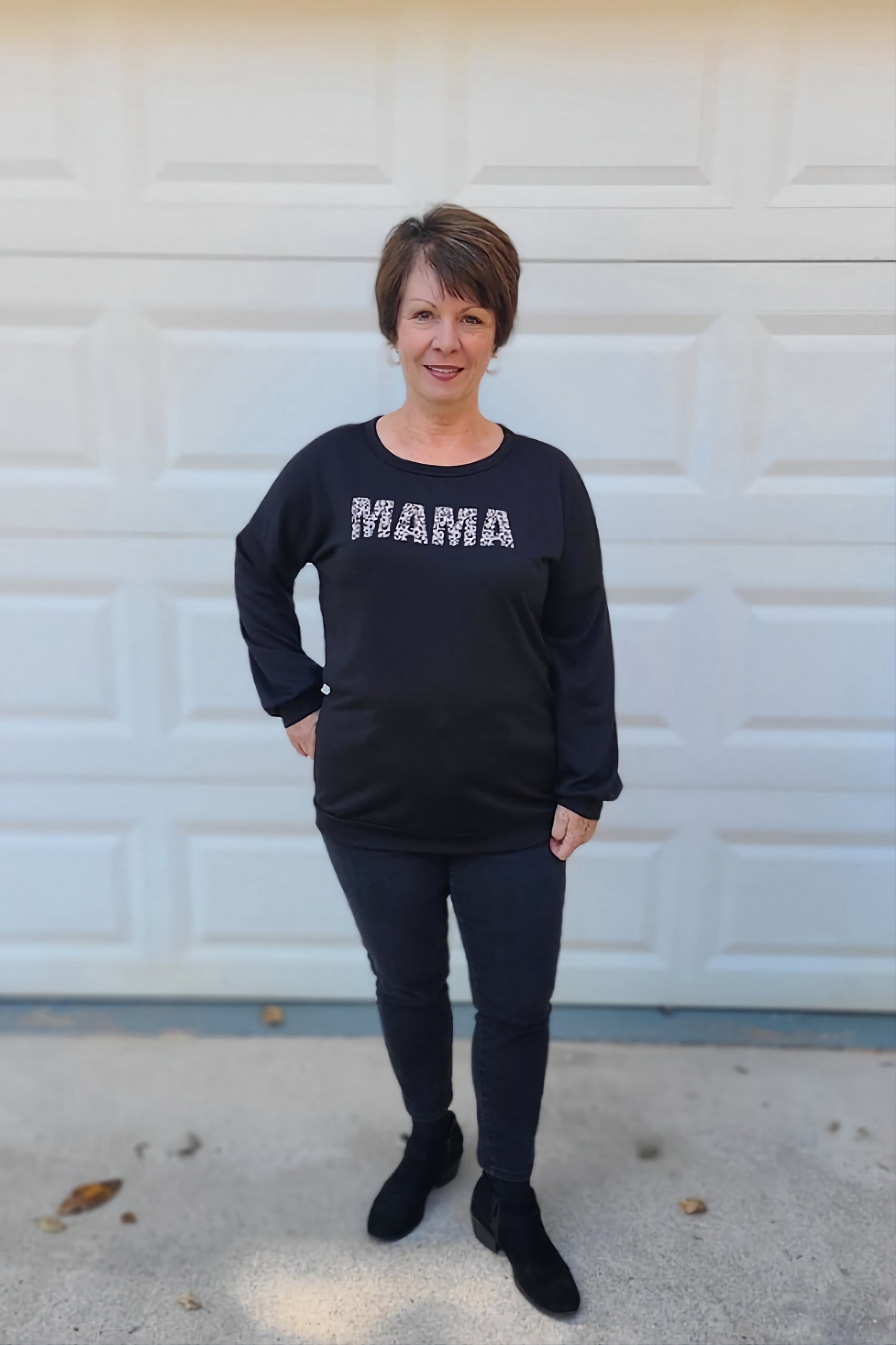 Leopard "Mama" Printed Pullover Top in Black