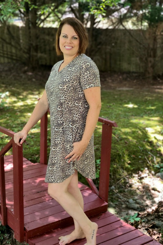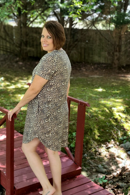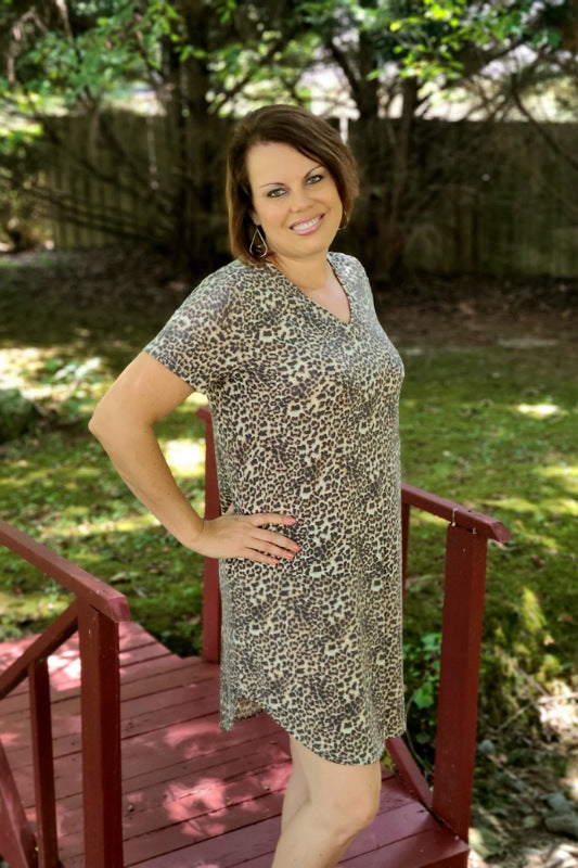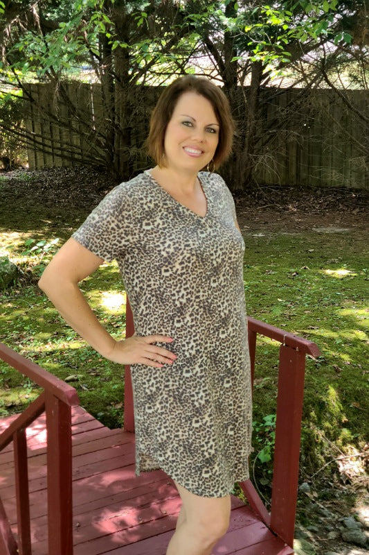 Everyone is going to give you a look of approval when you step out in this dress! This dress features a v-neckline, short sleeves, round hi-lo hemline and pockets. It is so soft and comfortable.