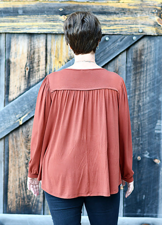 Be prepared for the upcoming season with essential pieces like this knit top! The details include cuffed long sleeves, round neckline, and a round hemline.