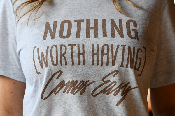 Nothing Worth Having Comes Easy Graphic Tee in Light Heather Gray
