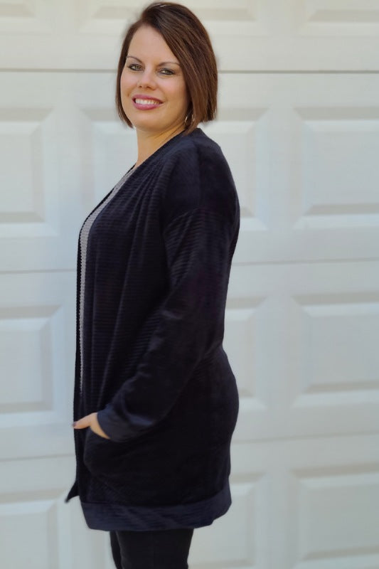 This long sleeve, lightweight knit cardigan with front pockets is guaranteed to be a new seasonal essential! You will find that every day layering comes easy with its soft, velvet chenille material. This cardigan will go perfectly with whatever you desire!