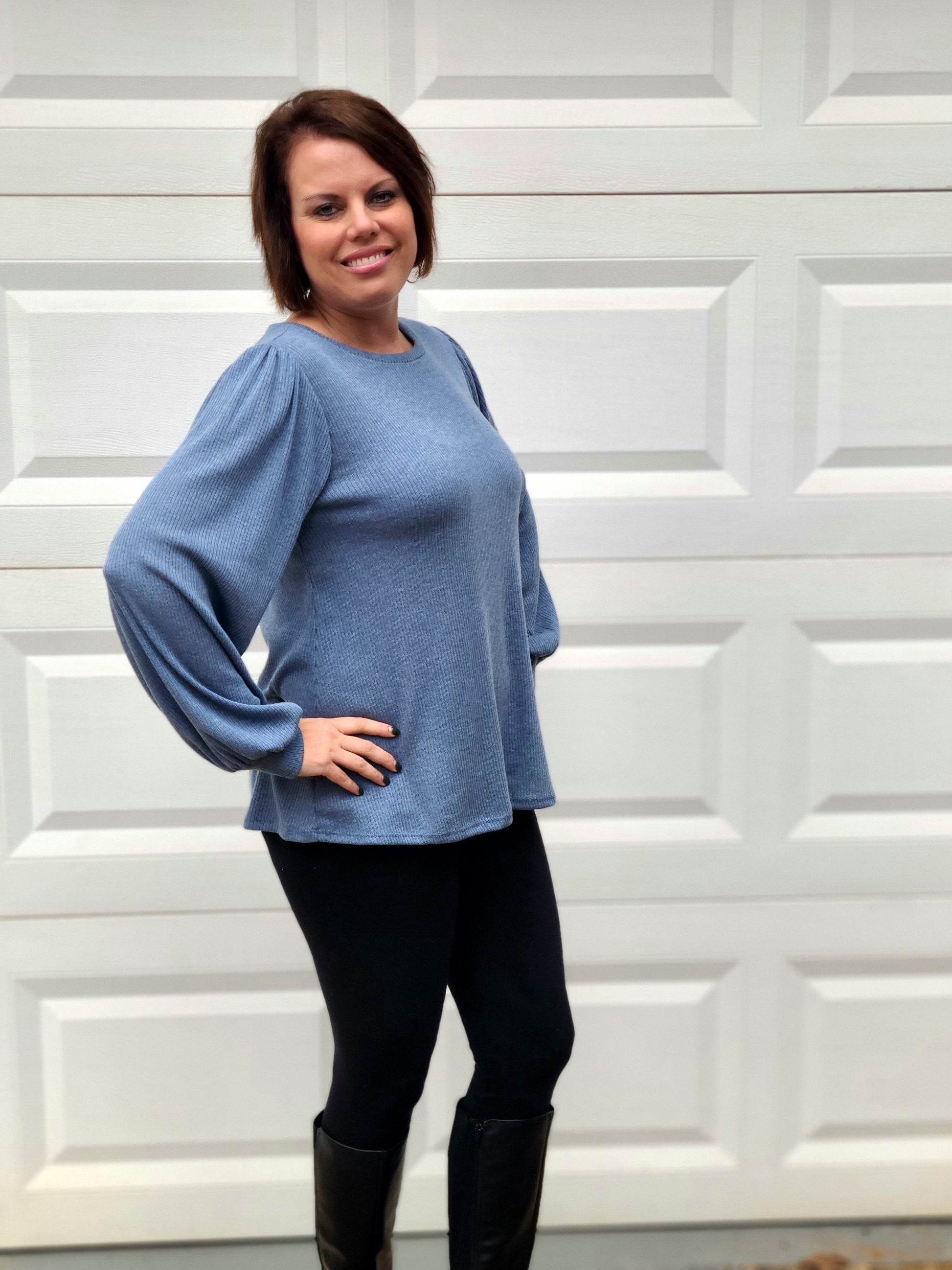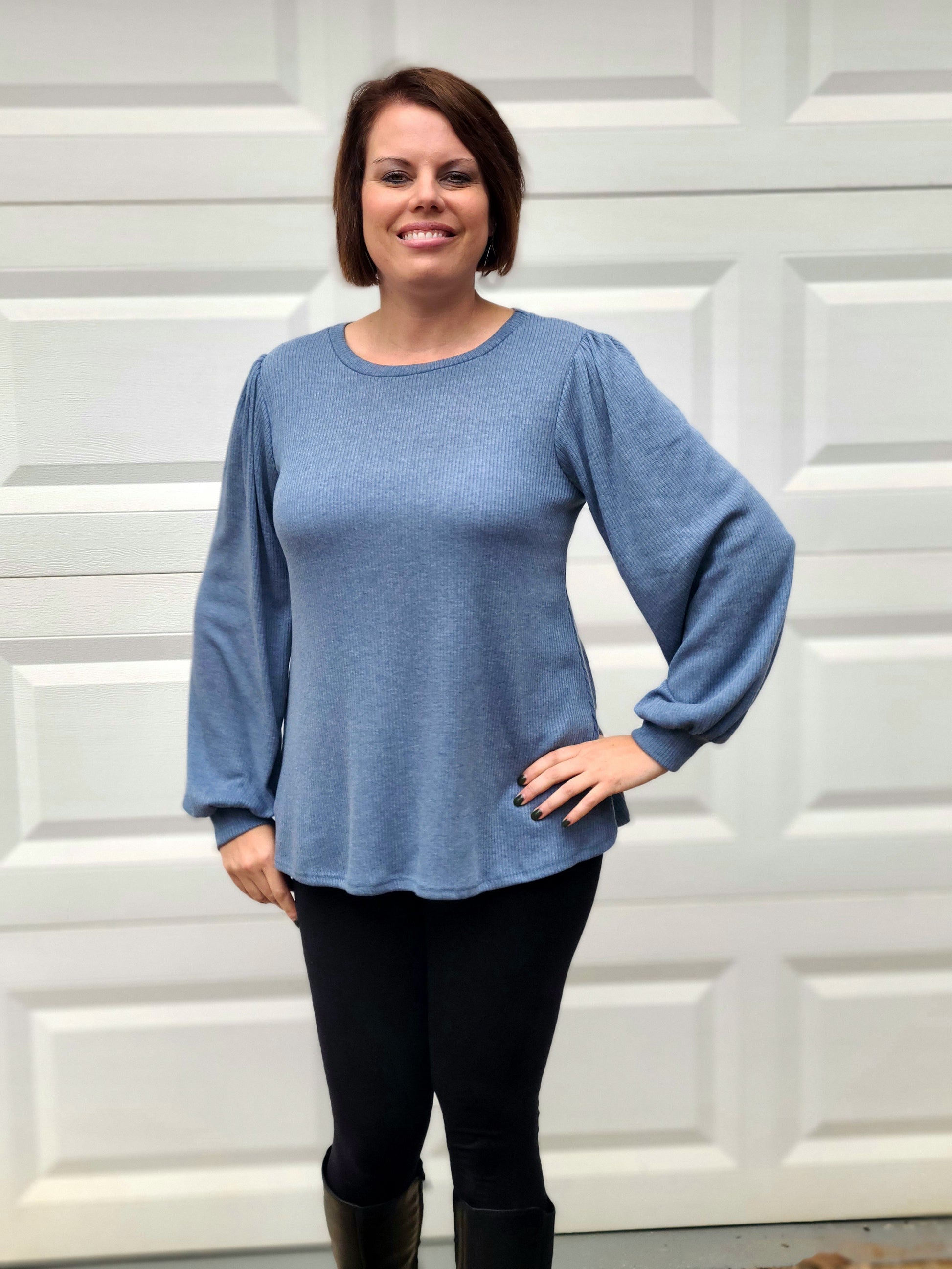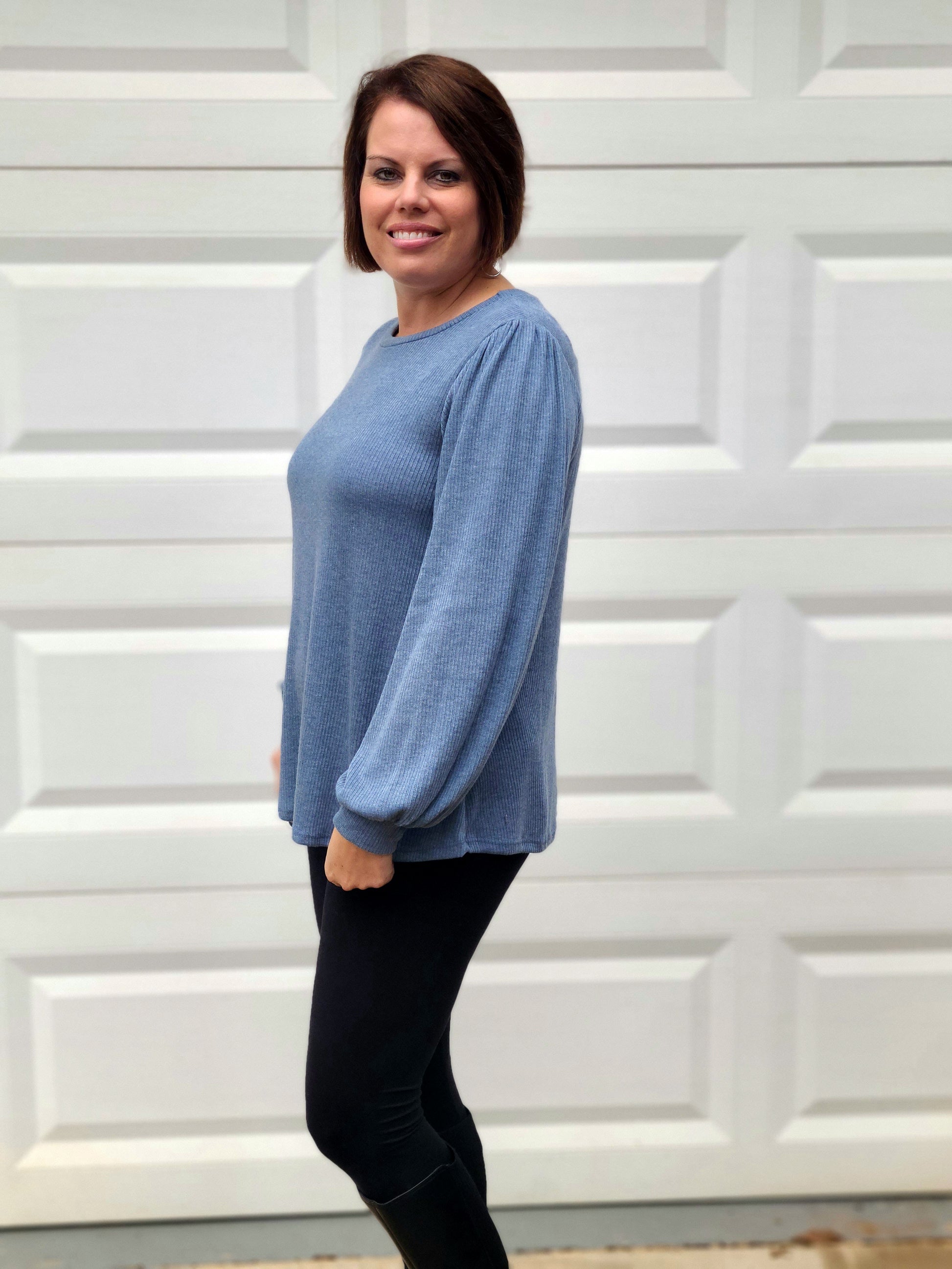 Stay warm and cozy this upcoming season in this top! This top features a classic ribbed pullover fit, round neckline, puff sleeves, and it is so soft and comfortable. Pairs perfectly with any denim and can be layered with any jacket!