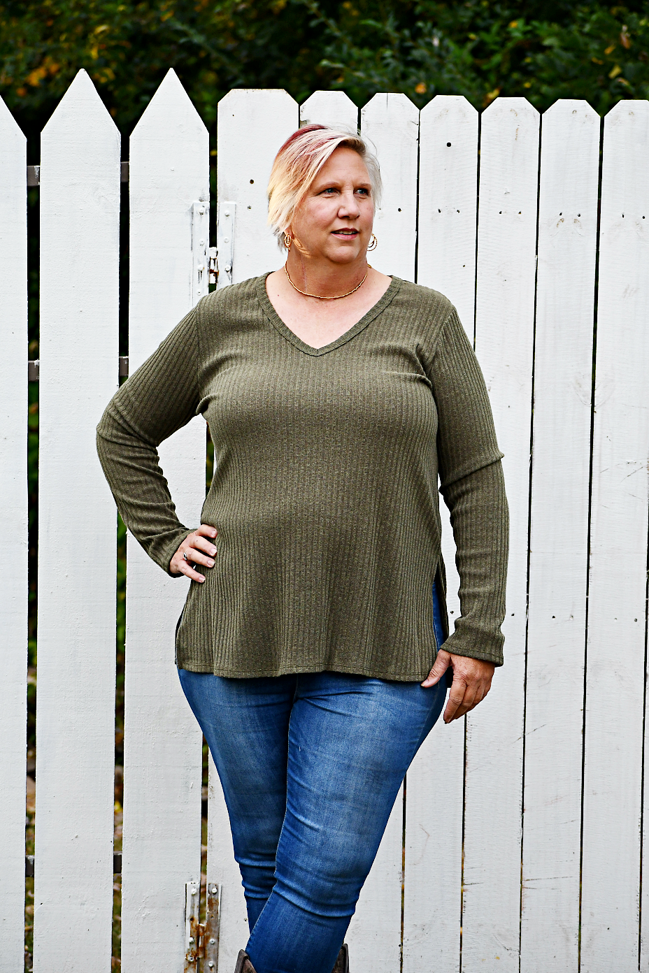 Our fall-tastic Ribbed Knit Top in Dark Moss features a v-neckline, ribbed detail, long sleeves, side slits, and it is so soft and comfortable. Choose from cool colors to add a touch of personality to any look. You'll love how versatile and cozy this top is for work, play, and any occasion!