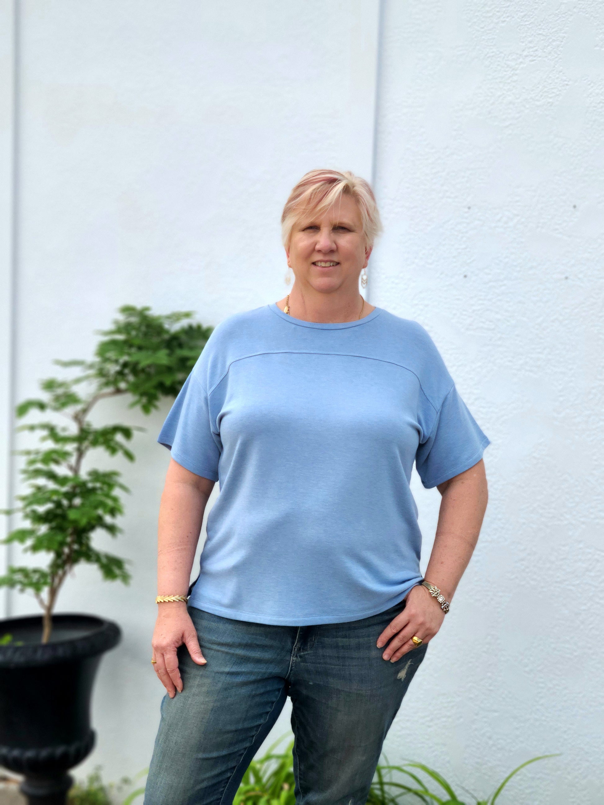 This top is a perfect throw on and go with your favorite pair of jeans or shorts top. The details include a round neckline, short sleeves, side slits and is so soft and comfortable.