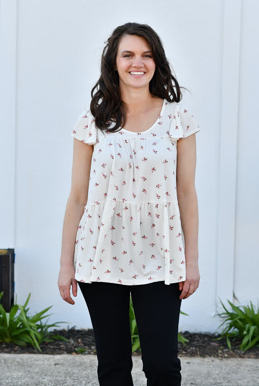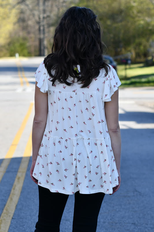 Ruffle Cap Sleeve Tiered Floral Top in Cream