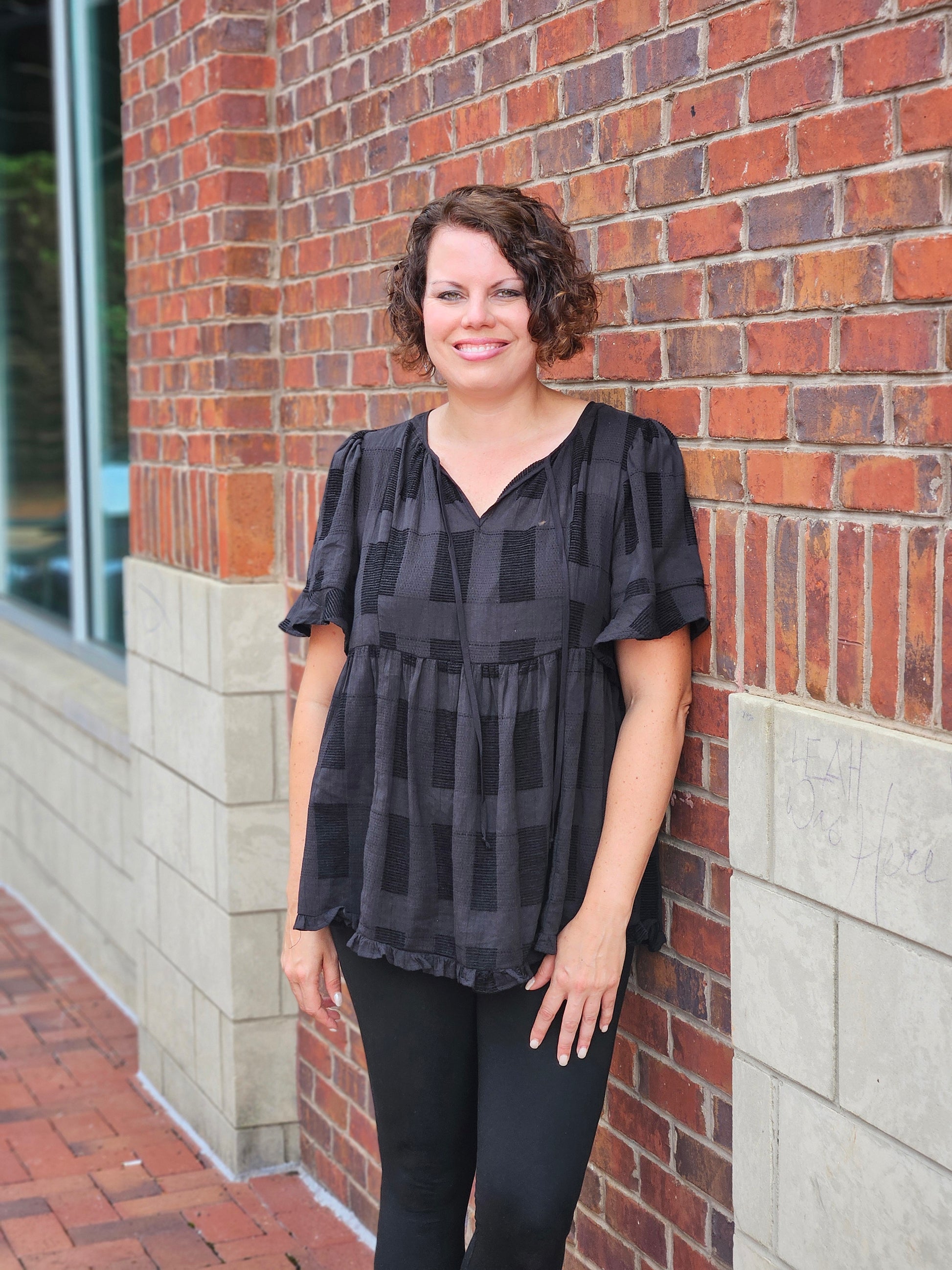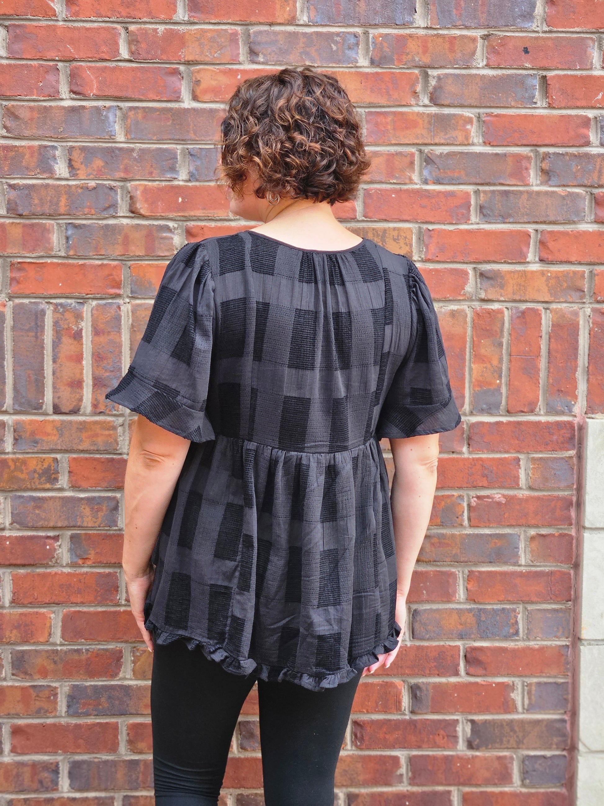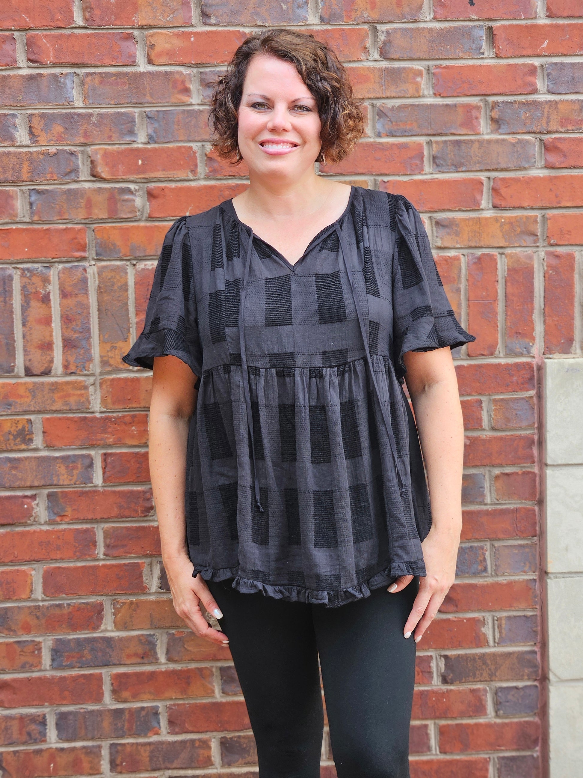 Sheer Textured Flutter Sleeve Babydoll Top in Black
