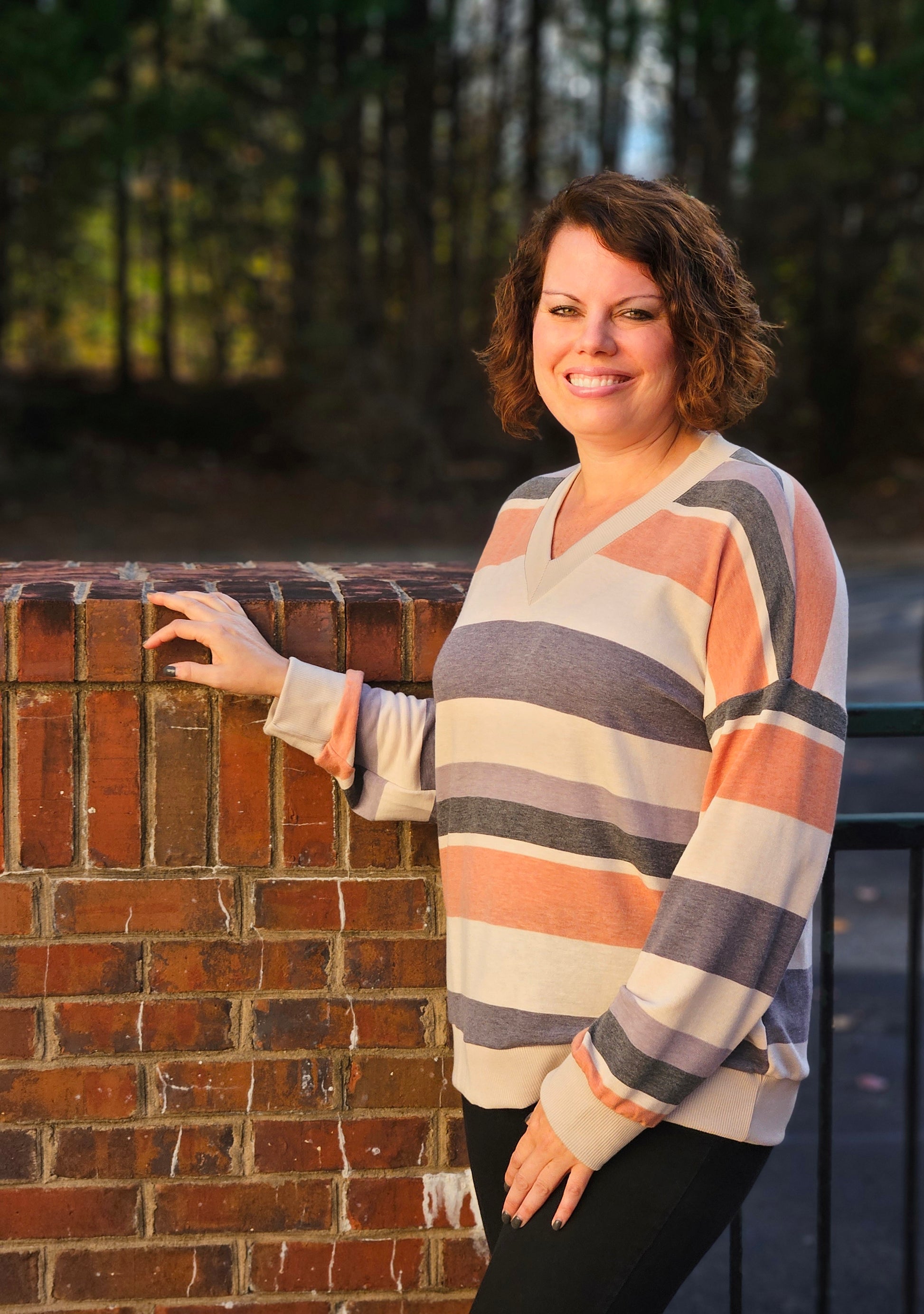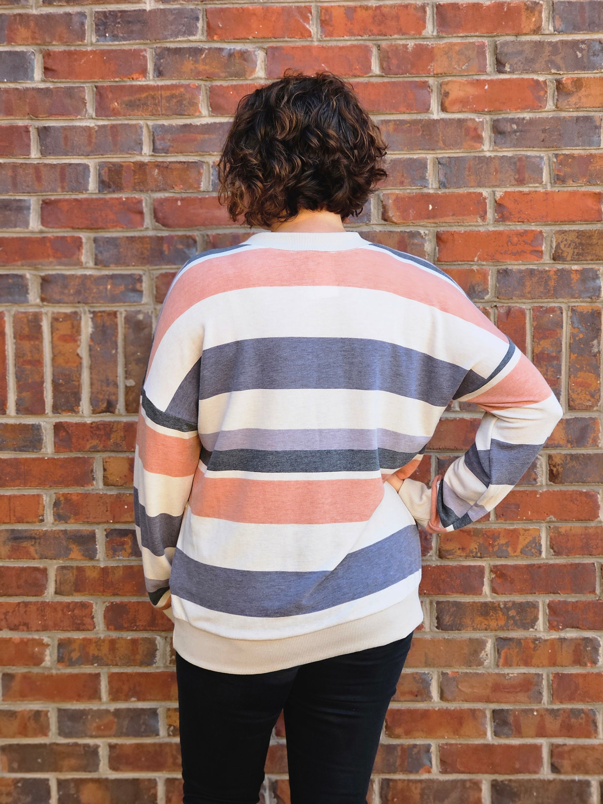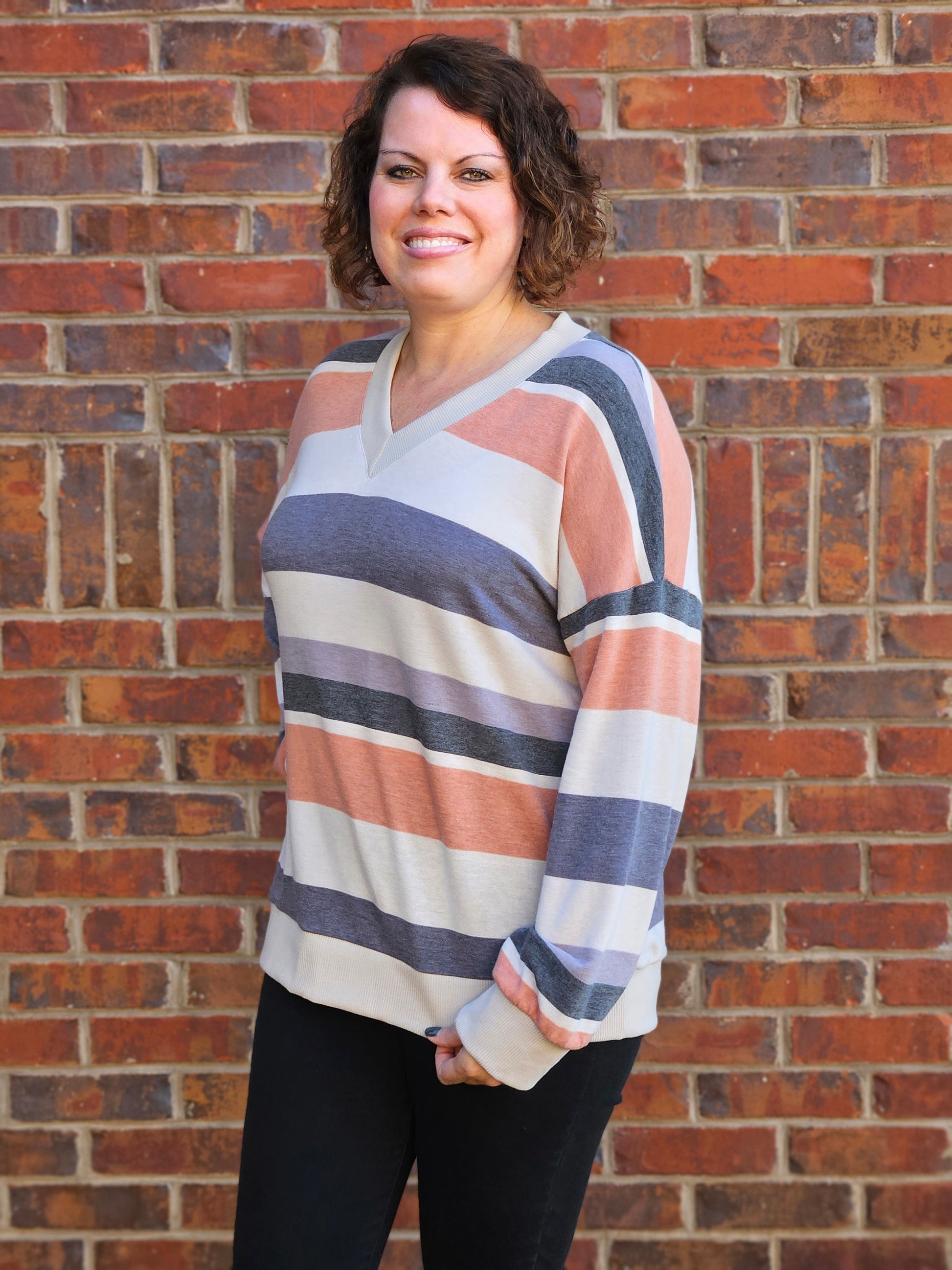 Wrap yourself in stylish comfort with our Striped Long Sleeve Top in Rust and Taupe! This lightweight top features long sleeves and a flattering v-neckline, perfect for any occasion. The soft material will leave you feeling cozy and confident, while the waistband adds a trendy touch. Upgrade your wardrobe with this must-have piece today!