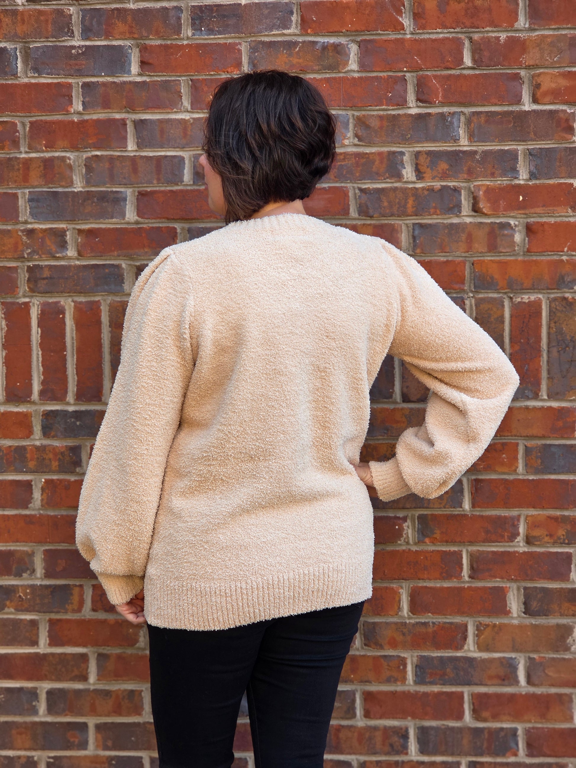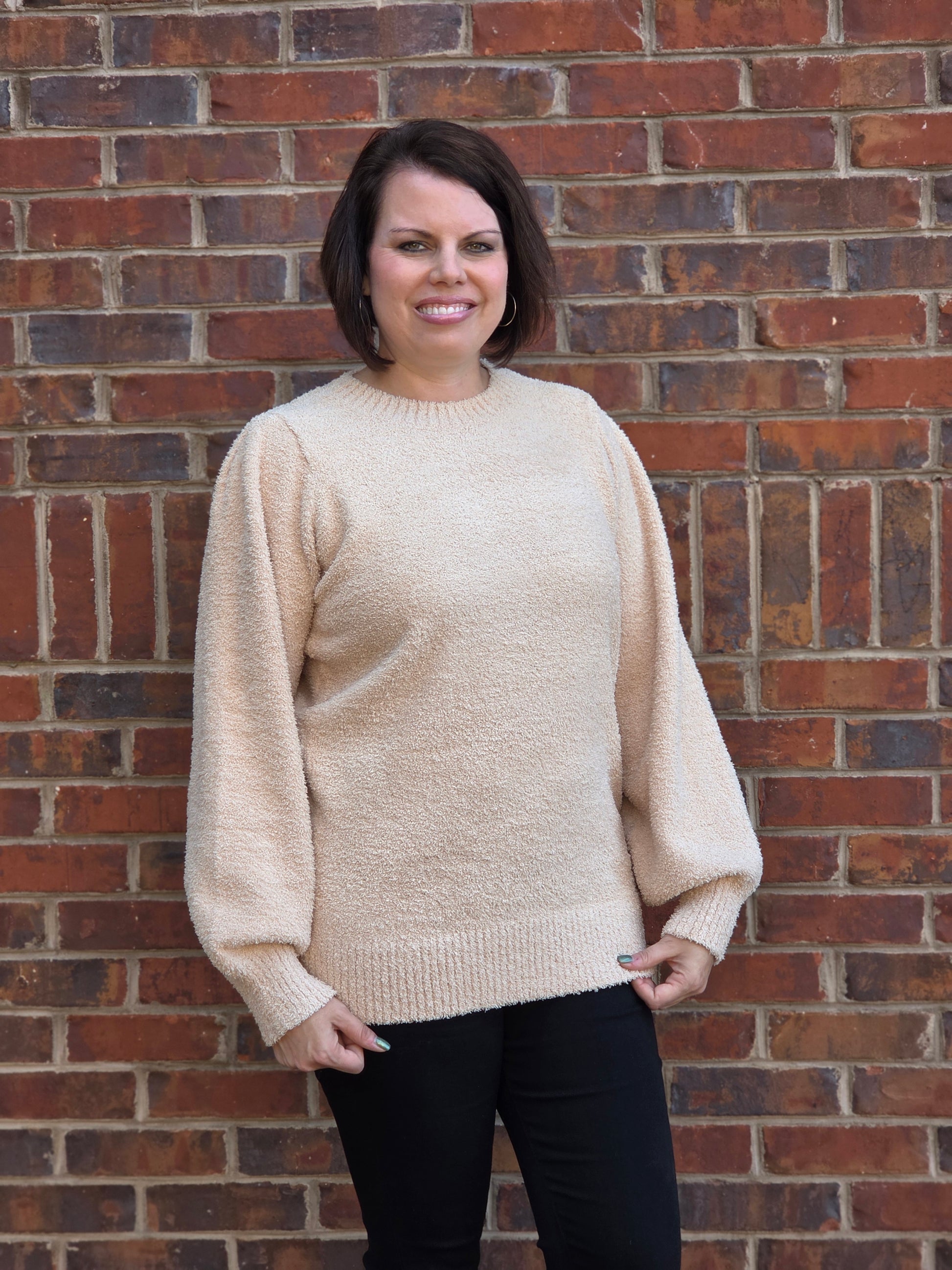 Experience the perfect sweater for your new year refresh with this textured long sleeved knit in warm latte. The inviting knit texture adds personality and depth to your everyday looks, while reinforced ribbed trim at the wrists and waistband ensures a polished fit that holds up beautifully through repeated wear. Designed for maximum versatility, it layers beautifully under jackets or stands alone as your go-to piece for effortless style. The generous long sleeves provide cozy coverage without heaviness, making this the sweater you'll reach for constantly as you build a wardrobe that truly reflects who you are.
