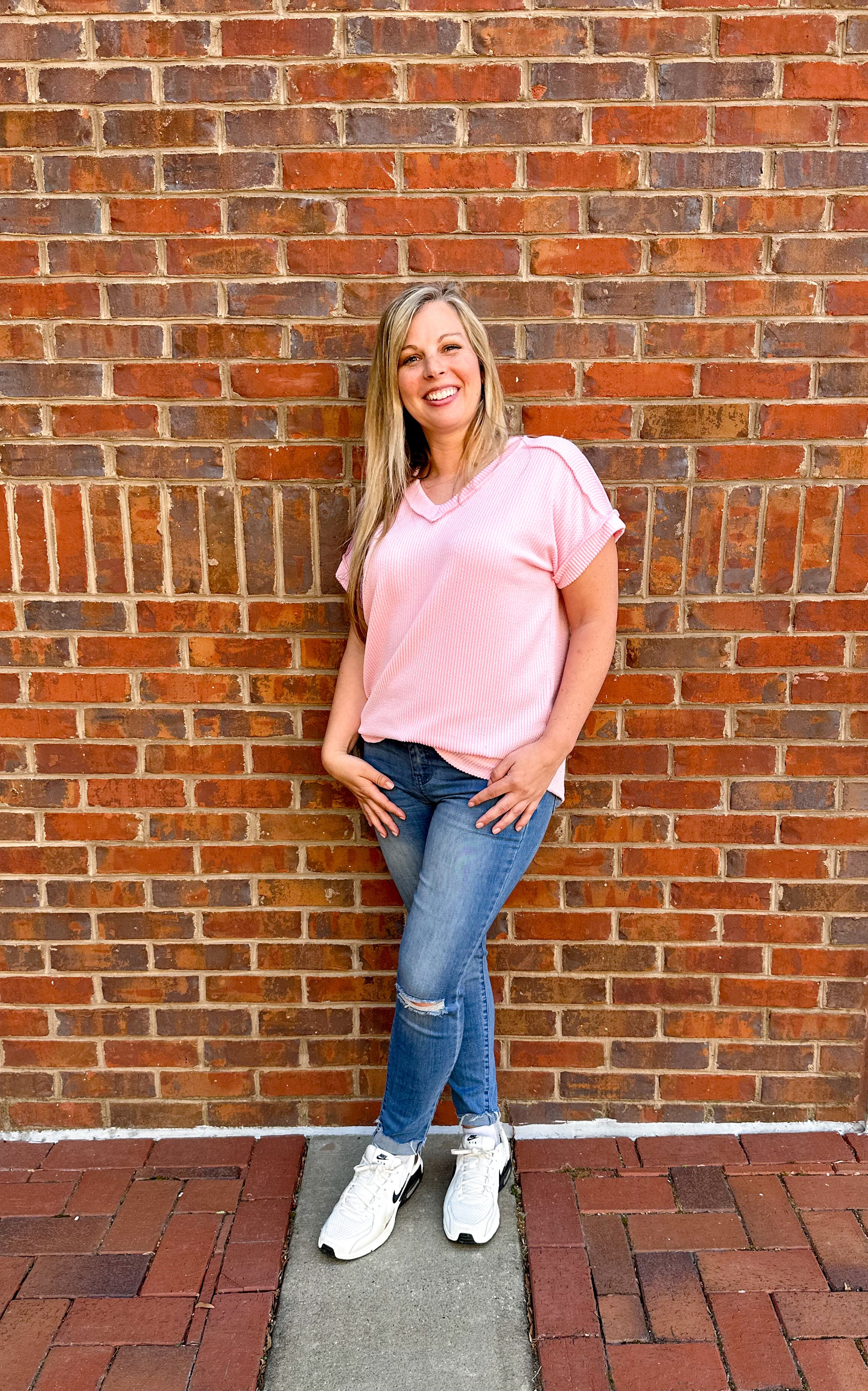 Urban Ribbed Top in Pink features lets you have a top that will elevate your style and make you stand out in the best way possible! With dolman sleeves and band, a v-neckline, detailed stitching, and a rounded hem, this urban and modern ribbed top will make a statement.