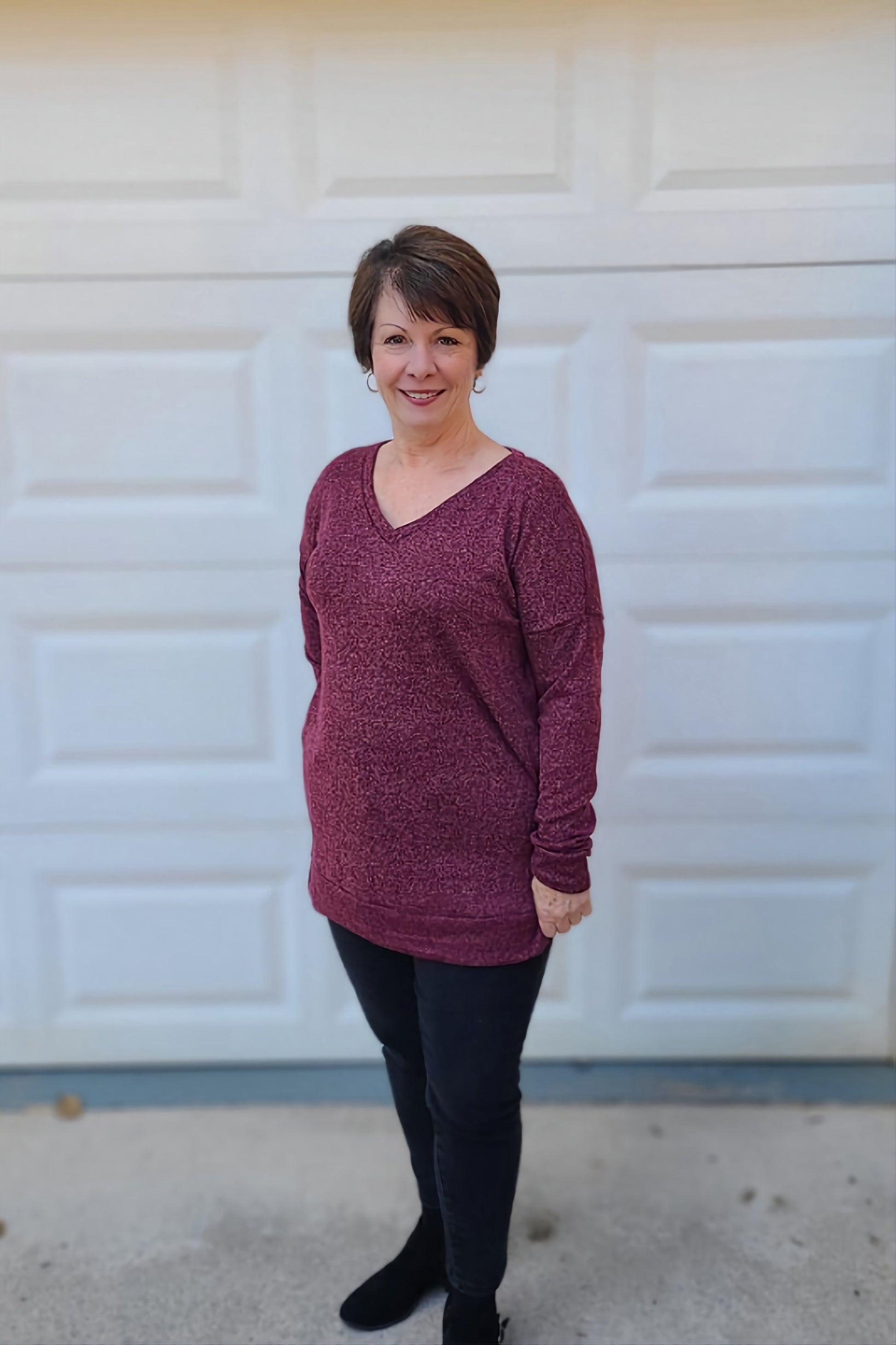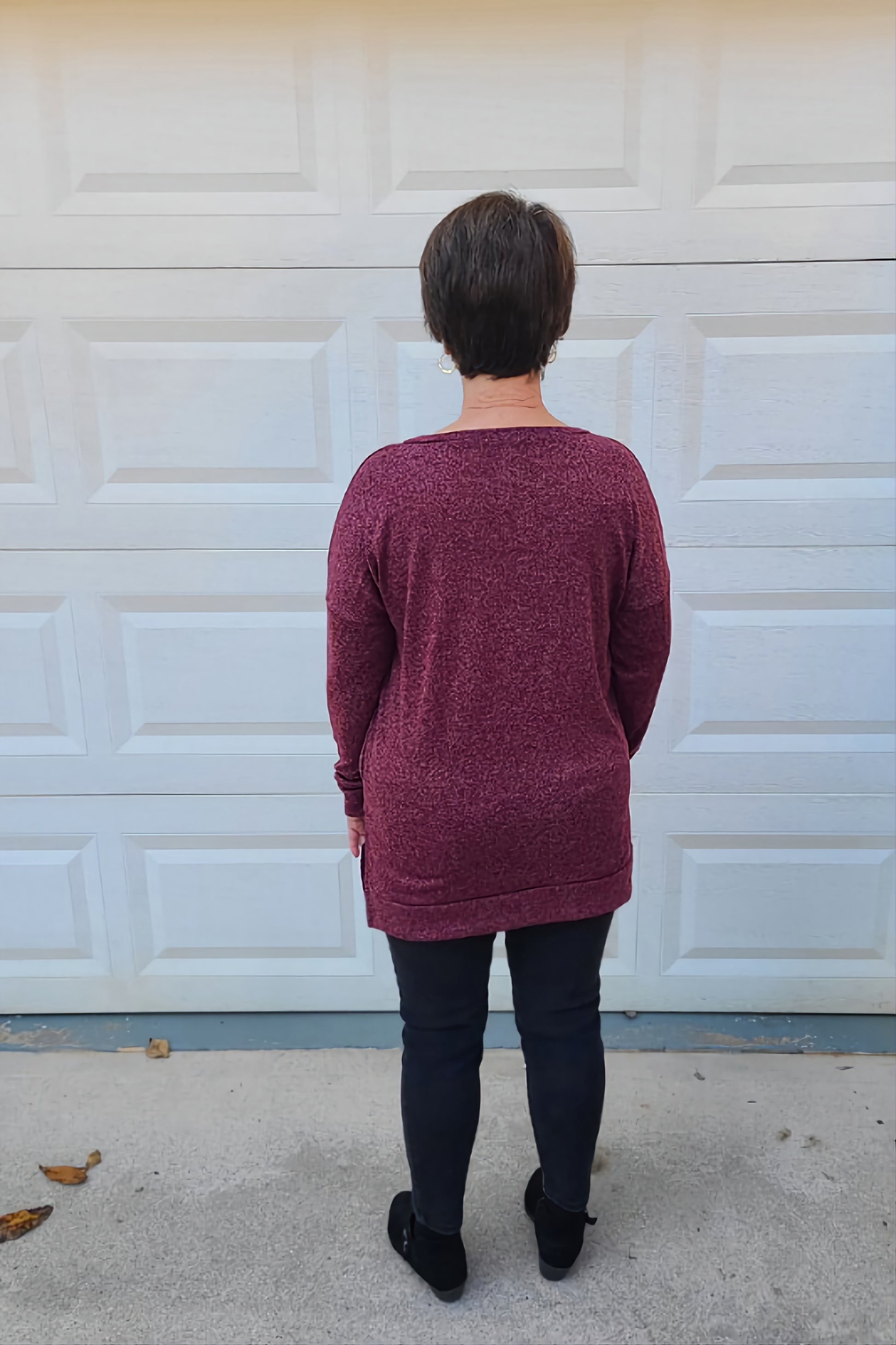 V- Neck Long Sleeve Tunic Top in Burgundy